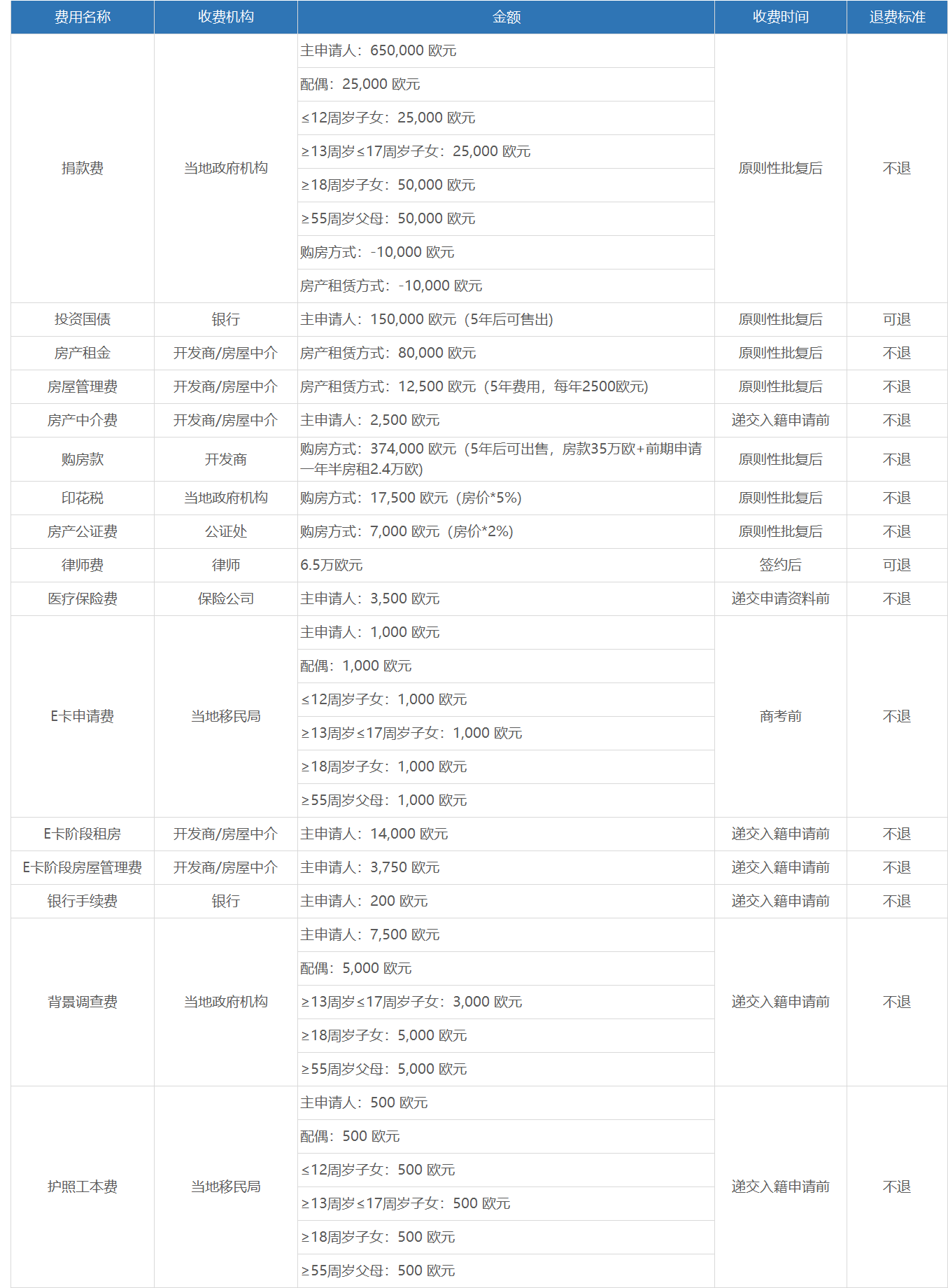 配偶及18岁以上孩子及父母 2.5万欧元/人;